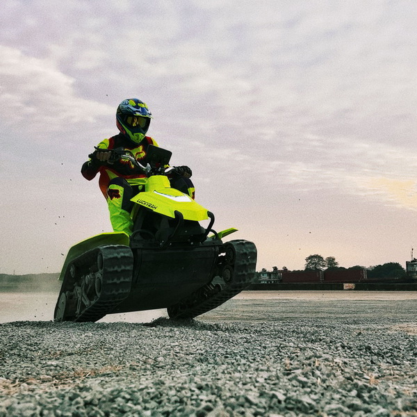 இரட்டை உயர்தர 3 கிலோவாட் மோட்டார்கள் மூலம் இயக்கப்படும் மற்றும் பெரிய திறன் கொண்ட லித்தியம் பேட்டரிகள் பொருத்தப்பட்டிருக்கும், இந்த ஸ்னோமொபைல் அடர்த்தியான காடுகள் மற்றும் ஆழமான பனியை வழிநடத்த ஏற்றது. அதன் ஸ்கேட்போர்டு ஸ்டீயரிங் அமைப்பு எந்த பருவத்திலும் சுவாரஸ்யமான வாகனம் ஓட்டுவதை உறுதி செய்கிறது. இரண்டு நீடித்த ரப்பர் தடங்களுடன், இது பல்வேறு நிலப்பரப்புகளை சிரமமின்றி மாஸ்டர் செய்கிறது. கூடுதல் வசதிக்காக, கைப்பிடிகள் மடிந்து, போக்குவரத்து மற்றும் சேமிப்பகத்தை ஒரு தென்றலாக மாற்றுகின்றன.
